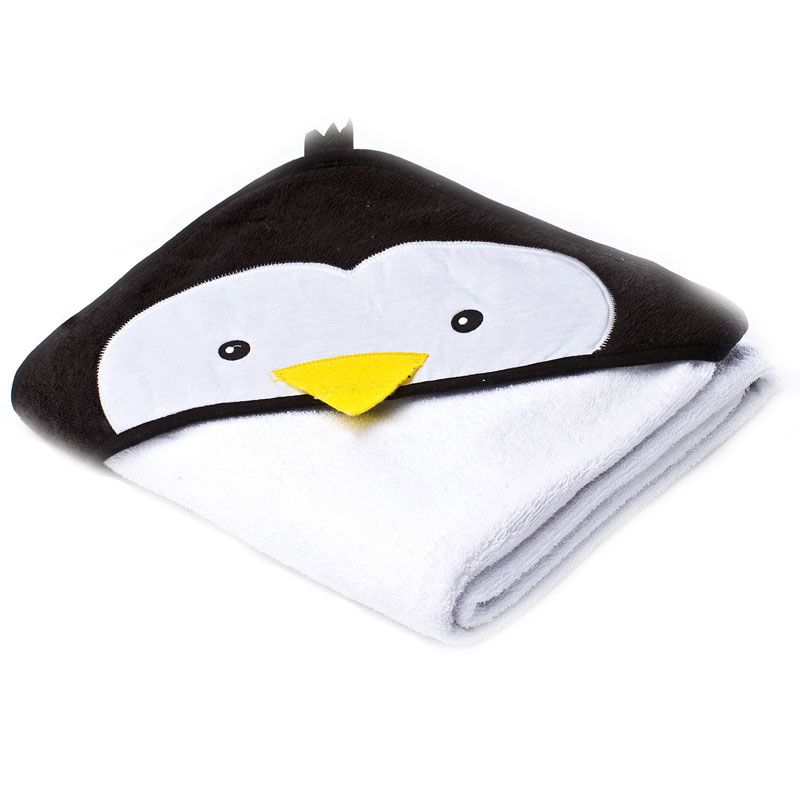 3D Rankšluostis kūdikiui "Pinguin" su gobtuvu 100x100cm "frotte" baltos sp.