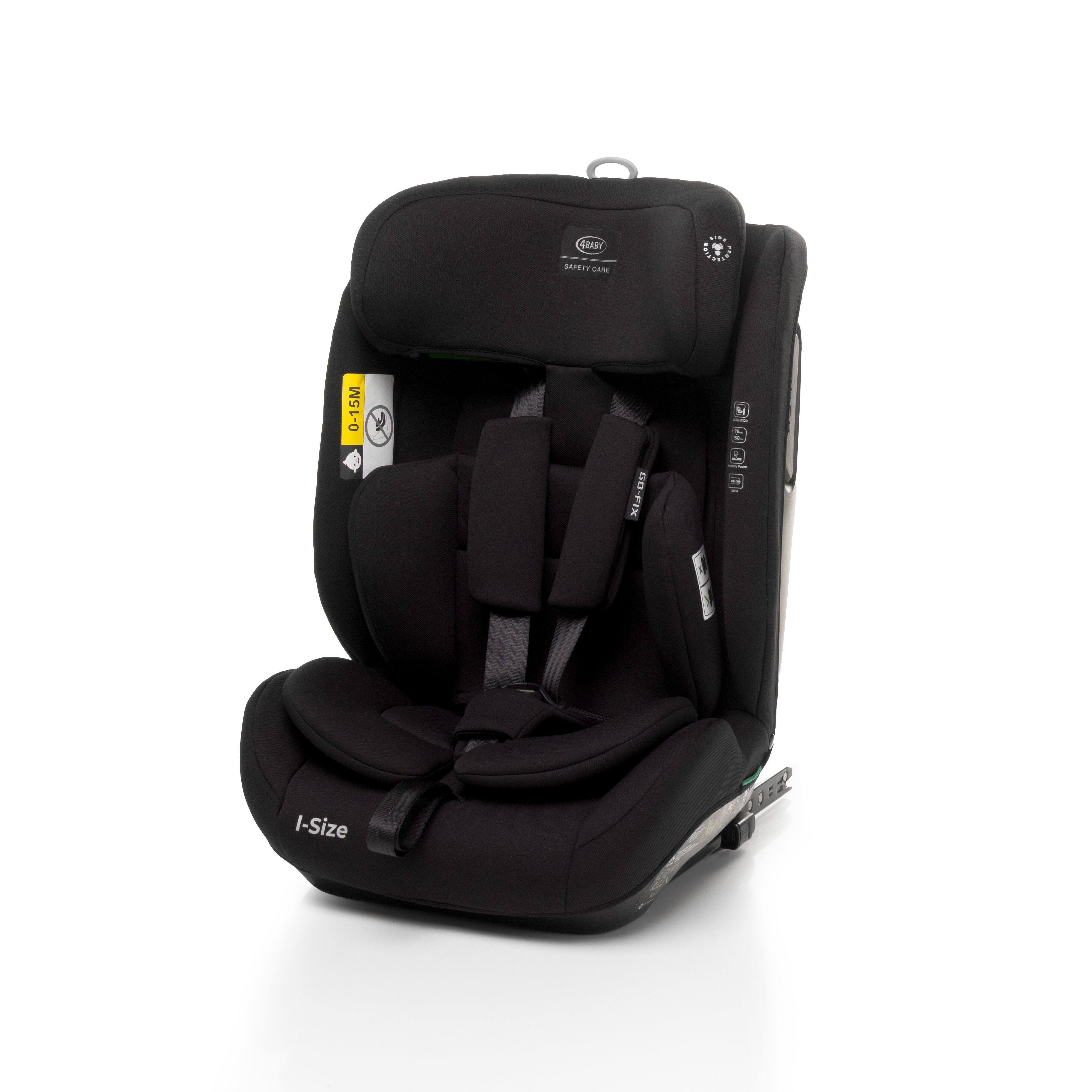 4Baby Go-fix yra automobilinė kėdutė vaikams nuo 76 iki 150 cm ūgio, sertifikuota pagal I-Size standartą, užtikrinanti saugumą ir komfortą iki 12 metų amžiaus.