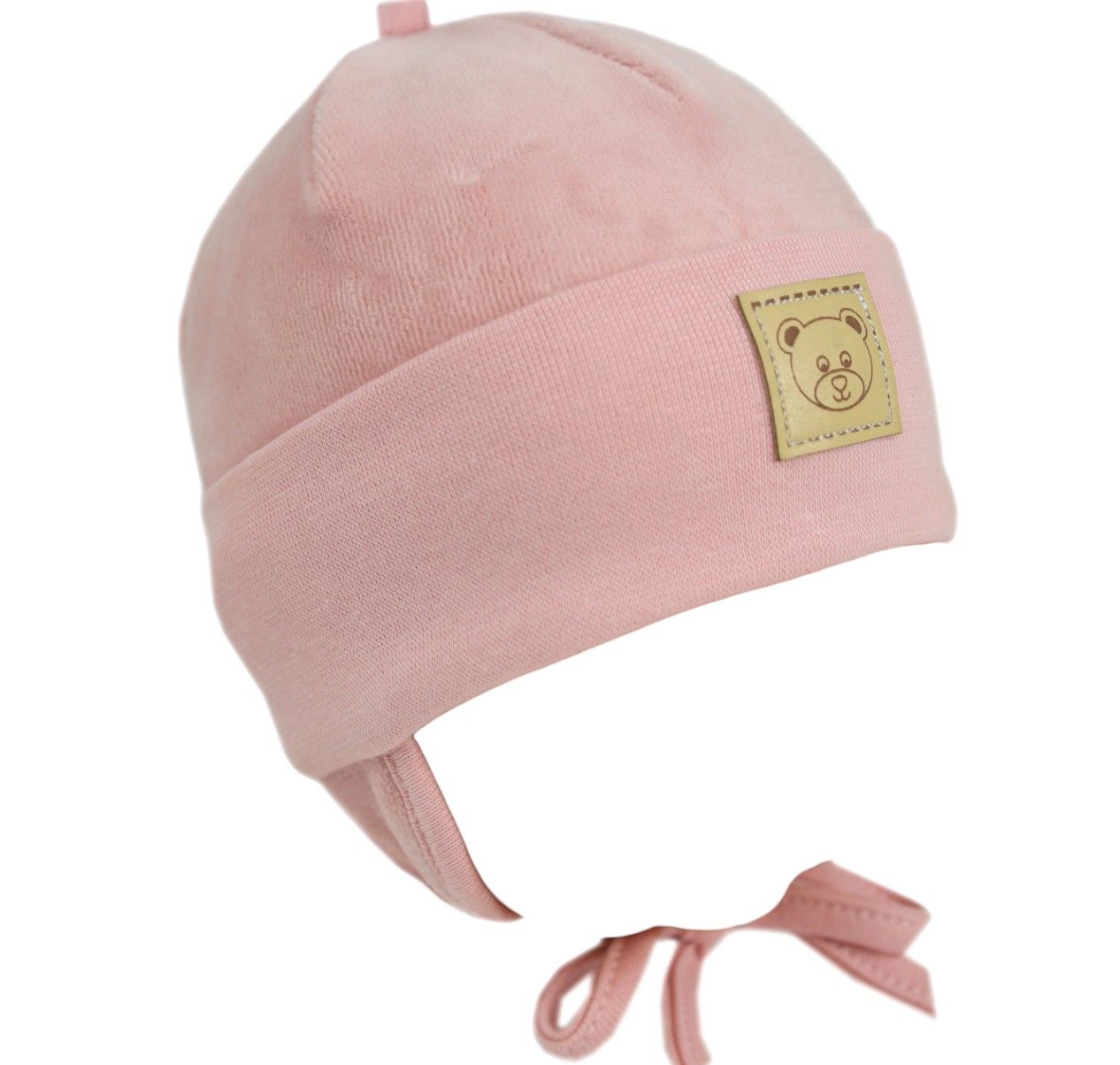 Kepurytė surišimas po smakru puikiai išlaiko kepurėlę ant kūdikio galvos.