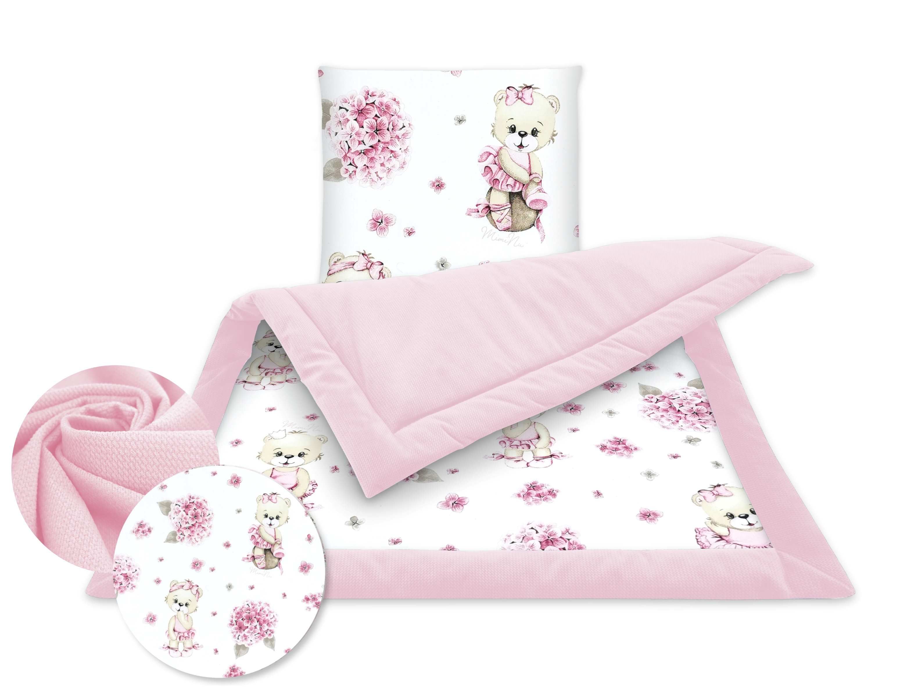 Subtylus ir elegantiškas rinkinys: pledas su dekoratyviniu rėmeliu + pagalvė kūdikiui