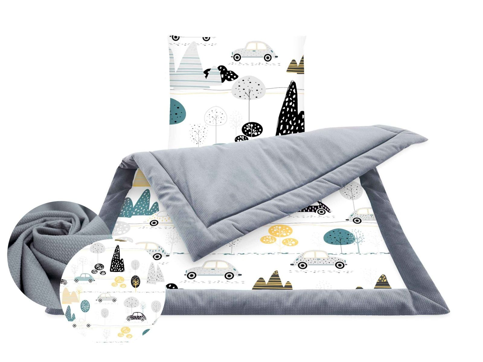 Šis komplektas tinkamas naudoti vežimėlyje, lopšiuke, ar mažesnio dydžio kūdikio lovytėse. Pagamintas iš kokybiškų, šiuolaikiškų medžiagų su subtyliu bei madingu raštais.