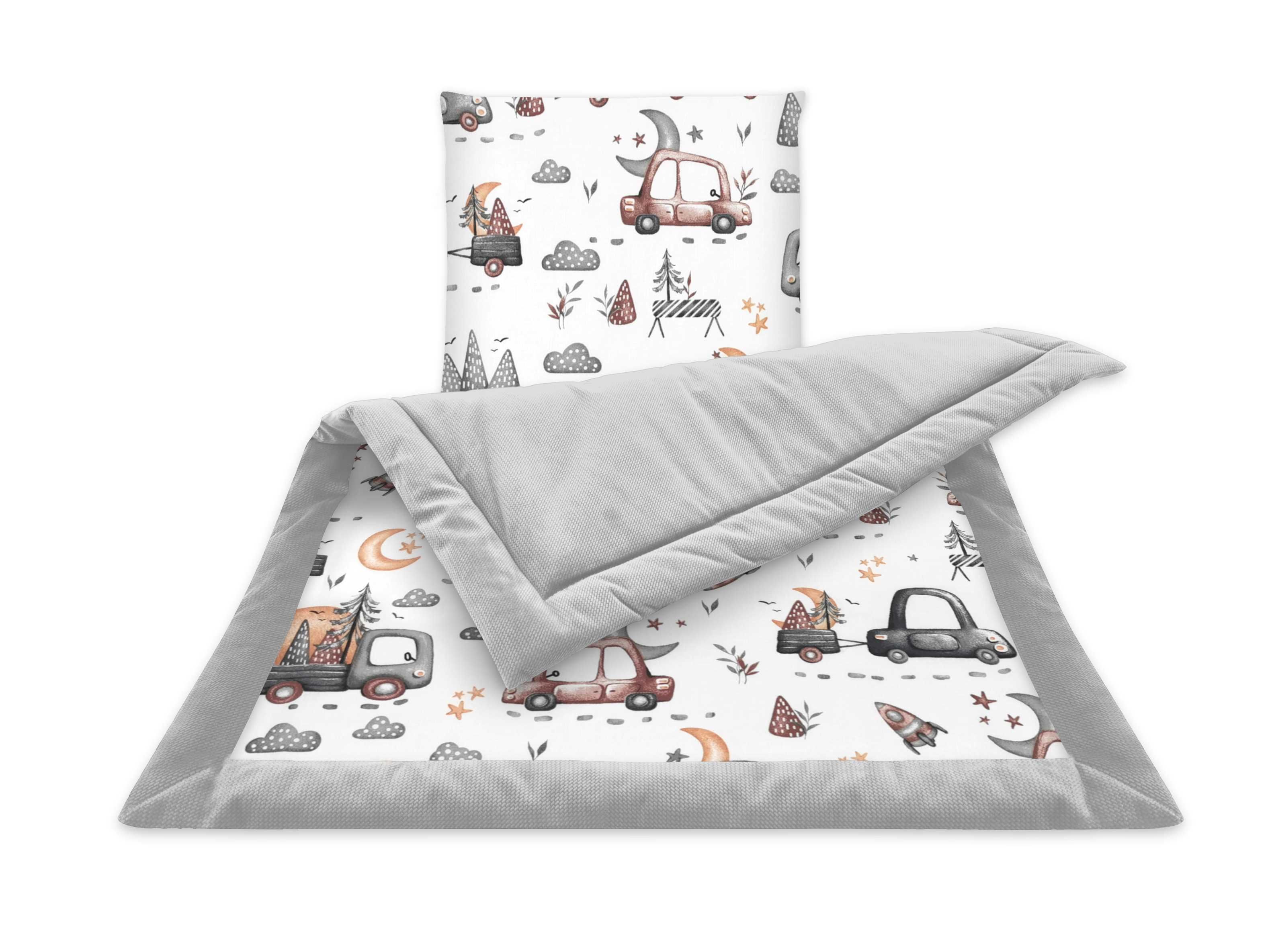 Šis komplektas tinkamas naudoti vežimėlyje, lopšiuke, ar mažesnio dydžio kūdikio lovytėse. Pagamintas iš kokybiškų, šiuolaikiškų medžiagų su subtyliu bei madingu raštais.