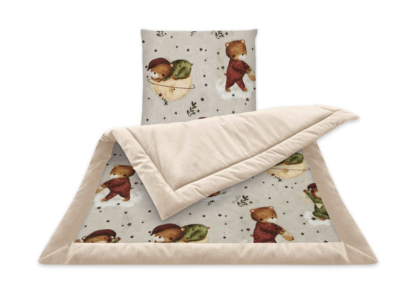 Šis komplektas tinkamas naudoti vežimėlyje, lopšiuke, ar mažesnio dydžio kūdikio lovytėse. Pagamintas iš kokybiškų, šiuolaikiškų medžiagų su subtyliu bei madingu raštais.
