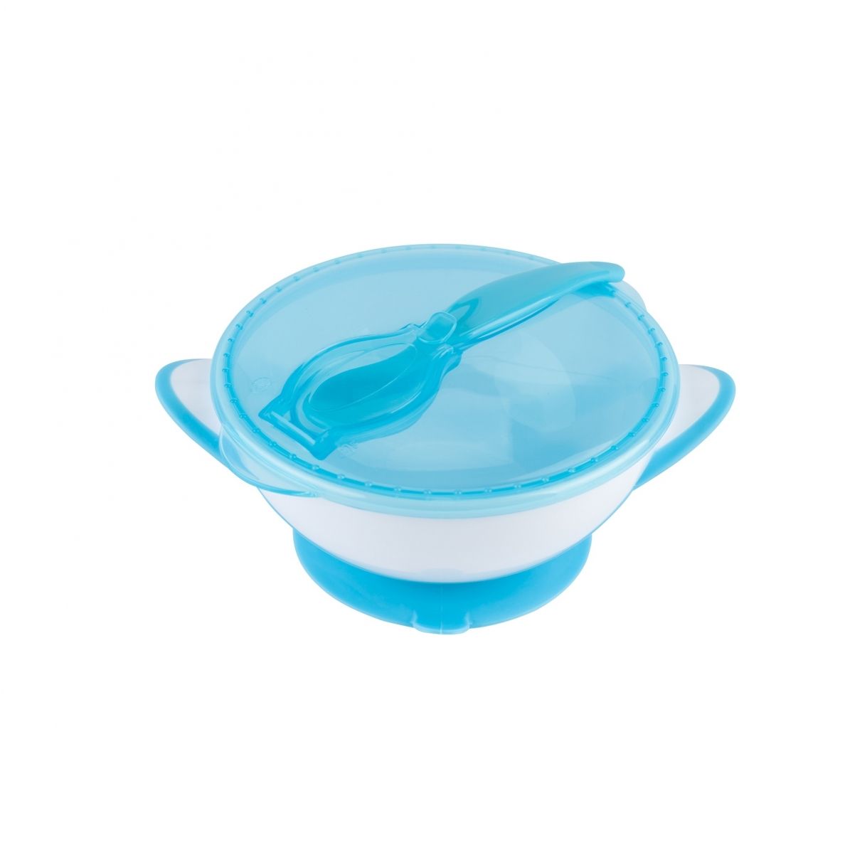 Babyono lėkštė limpančiu dugnu su dangteliu ir šaukštu, mėlyna