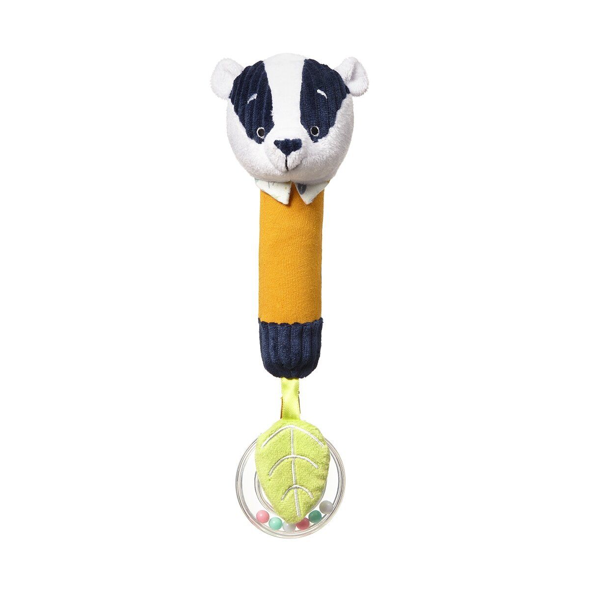 Žaislas pagamintas iš minkštų ir skirtingų medžiagų, kurią malonu liesti.
