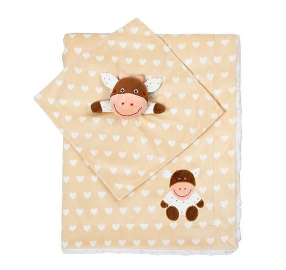 Dvisluoksnė antklodė yra pagaminta iš labai minkšto, šilto ir itin švelnaus audinio – pliušinio minkštumo „minky“ medžiagos. Viršutinis sluoksnis pasižymi ryškiomis spalvomis, dailiais raštais, siuvinėtas gyvūnų motyvais, tuo tarpu apatinis sluoksnis – tai minkštas audinys su pūkeliu, imituojantis avies vilną. Antklodė gali puikiai papildyti vaiko kambario interjerą, tapti dailiu vežimėlio priedu. Antklodė komplektuojama su mielu minkštu žaislu, kuris gali tapti pirmuoju vaiko draugu, prie kurio jis galės švelniai prisiglausti prieš miegą arba vaikščiojant lauke.
