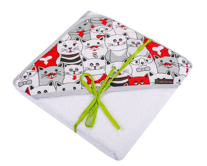Bambukinis rankšluostis kūdikiui "Baby bamboo" su gobtuvu 100x100 cm baltas su katinėliu