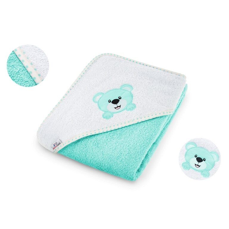 Bocioland rankšluostis su gobtuvu frotinis 100x100, žydras, meškiukas, BOC0223