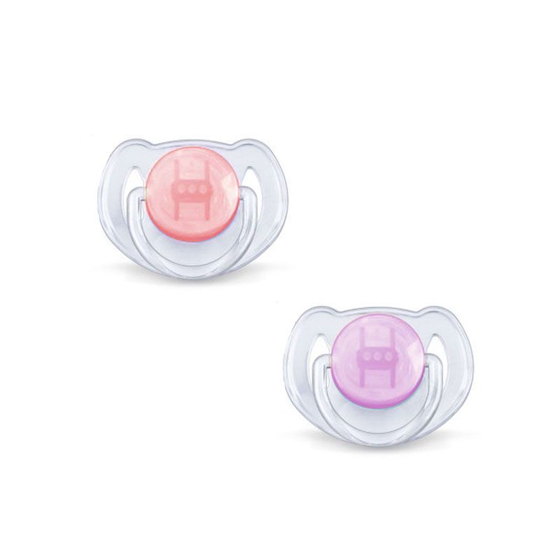 Čiulptukai AVENT "Translucent" ortodontinis 6-18m violet-rož.sp. 2vnt