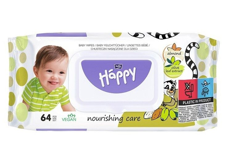 Drėgnos servetėlės Bella Baby Happy, su migdolų ir alyvuogių lapų ekstraktais 64 vnt.