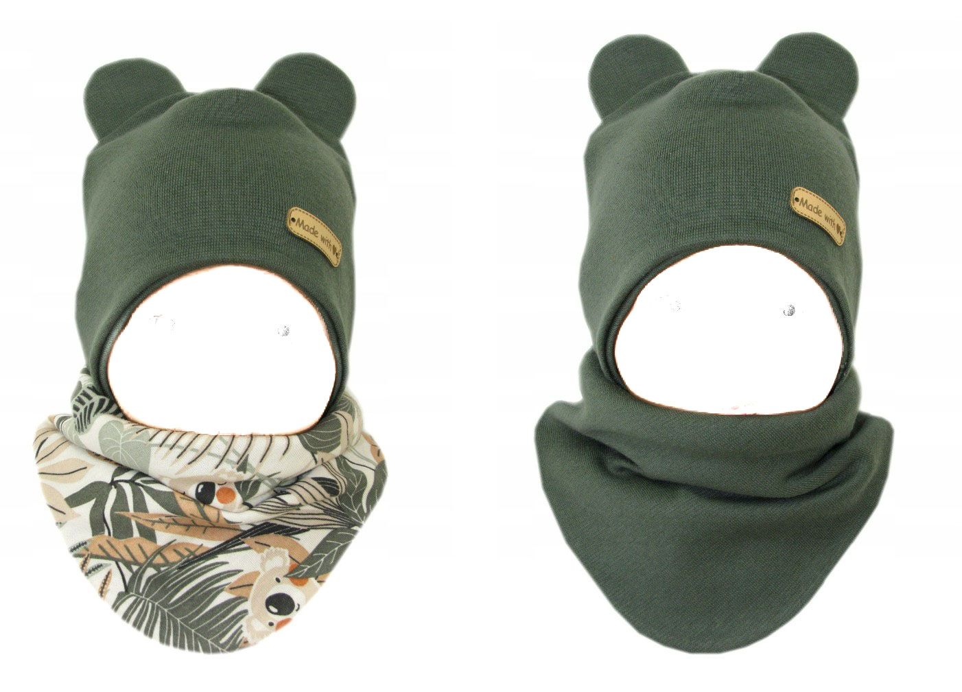 Aprašymas Kepurytė ir kaklaskarė kūdikiui "Love" - KHAKI