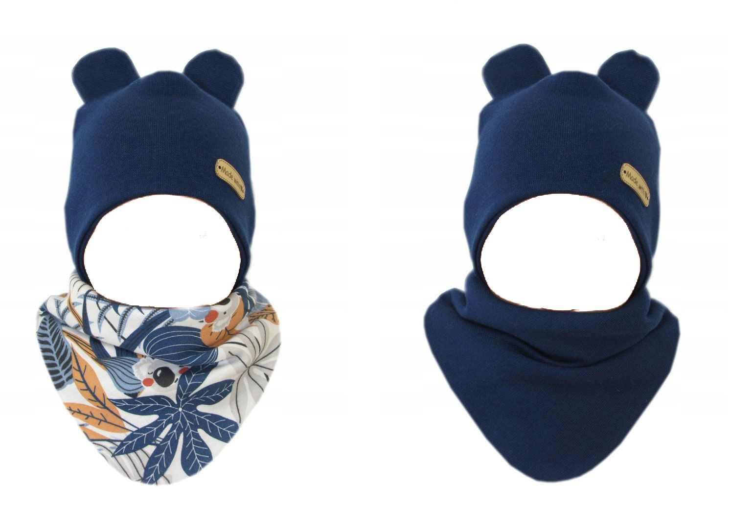Aprašymas Kepurytė (dviejų sluoksnių) ir kaklaskarė kūdikiui "Love" - navy