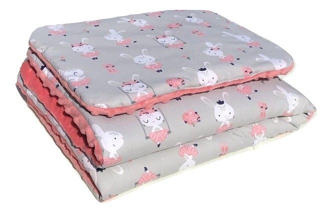 Komplektas vežimėliui "Doris" pledas 60x75cm ir pagalvė 35x25cm ant rožinio minky