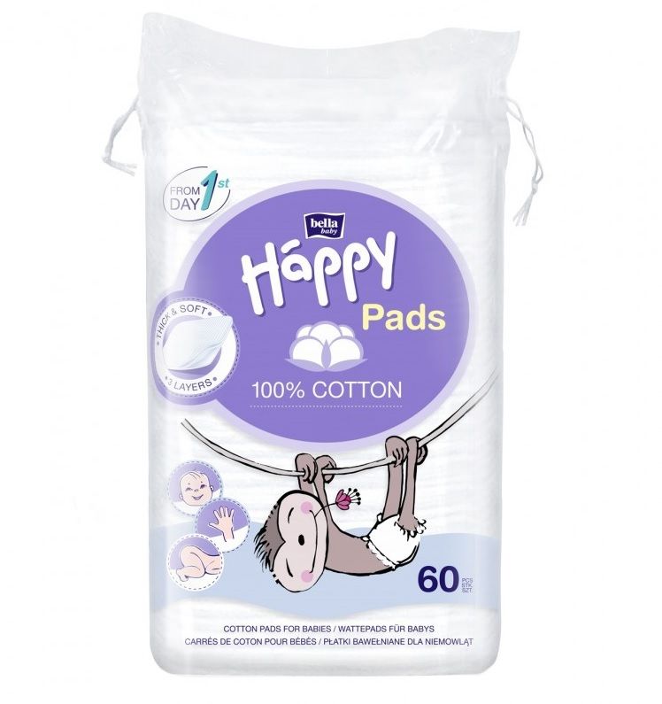 Kosmetiniai vatos lapeliai kūdikiams BELLA 60vnt Sandėlyje
