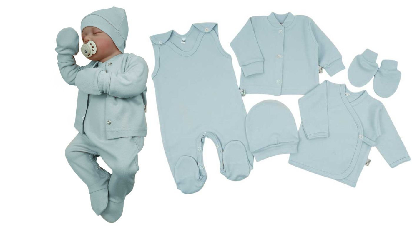 Kūdikio kraitelis - drabužėliai naujagimiui "Blank mint" 5 dalių