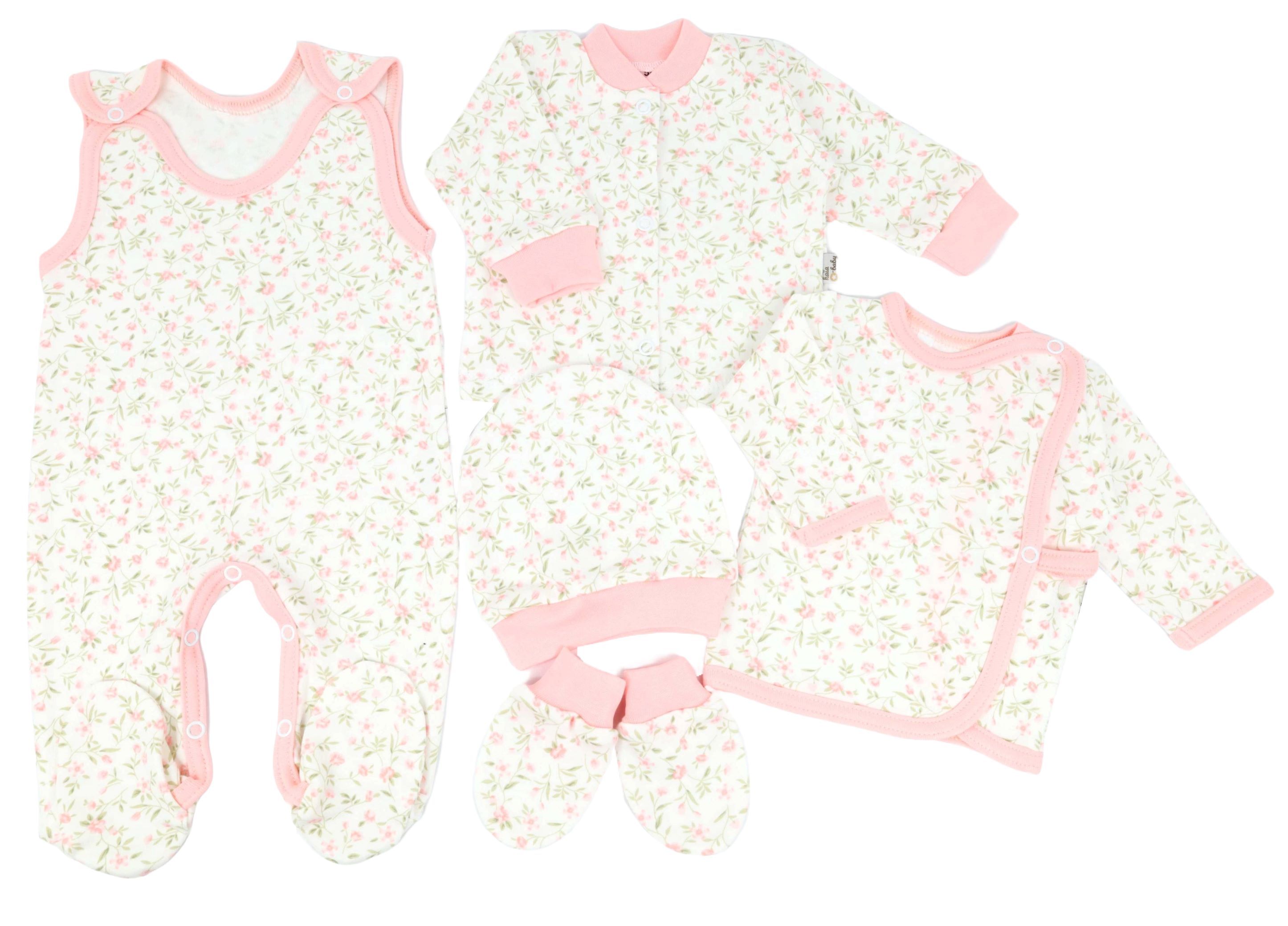 Kūdikio kraitelis - drabužėliai naujagimiui "Candy flowers" 5 dalių rožinės spalvos