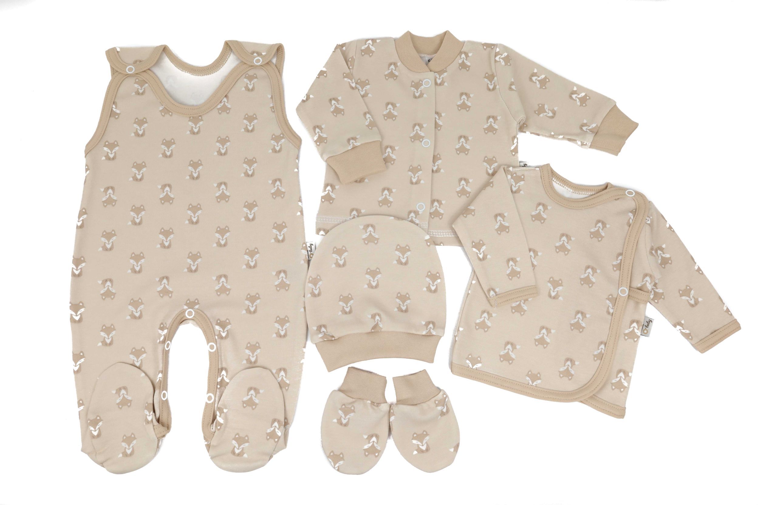 Kūdikio kraitelis - drabužėliai naujagimiui "Fox" 5 dalių smėlio spalvos