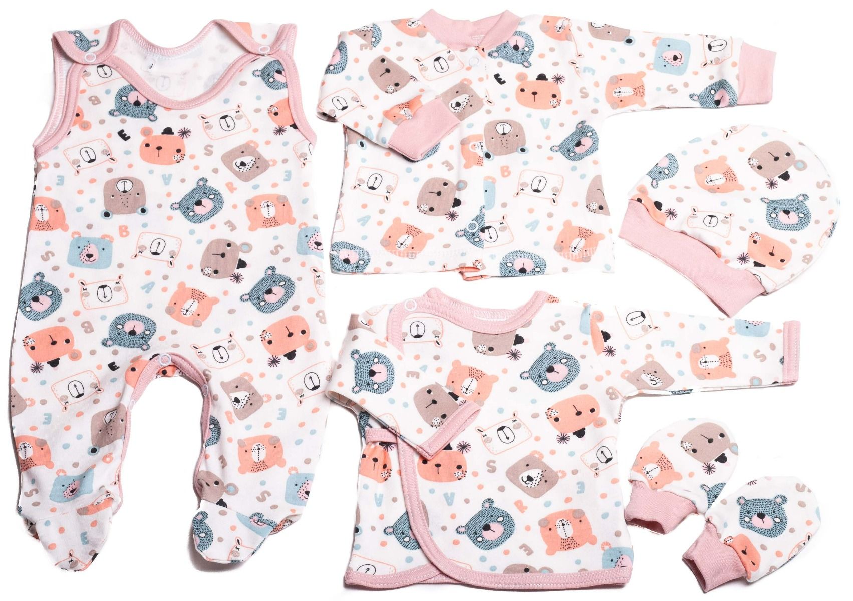 Kūdikio kraitelis - drabužėliai naujagimiui "Teddy pink" 5 dalių