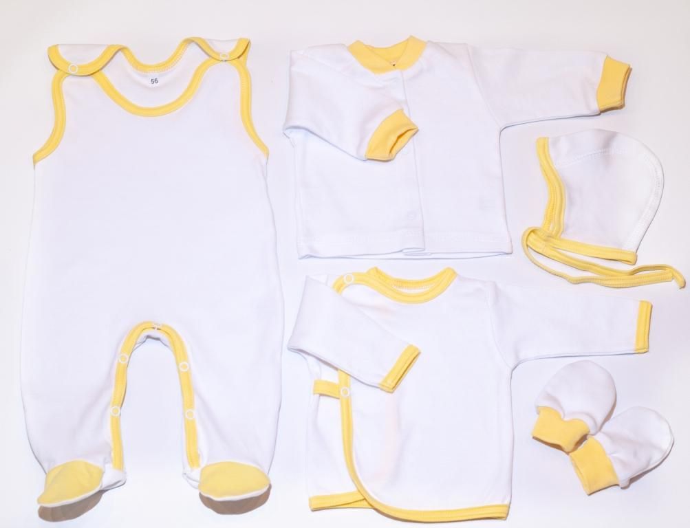 Kūdikio kraitelis - drabužėliai naujagimiui "Mono" 5 dalių geltonas