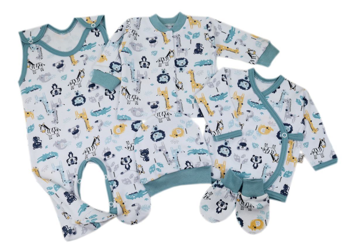 Kūdikio kraitelis - drabužėliai naujagimiui "Animals iceberg" 5 dalių