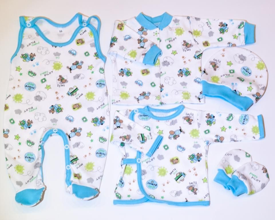 Šliaužtinukai, marškinėliai, švarkelis - tai yra patys pirmiausi naujagimio drabužėliai. Šliaužtinukai visai nevaržo kūdikio judesių, patikimai prilaiko marškinėlius, laiko nugarą ir kojytes šilumoje. Komplektą sudaro taipogi pirštinytės, kurios apsaugos mažylį nuo apsidraskimo. Drabužėliai yra pasiūti iš kokybiškos trikotažinės medžiagos, malonios prisilietimui ir nedirgina net pačios jautriausios ir švelniausios kūdikio odelės.