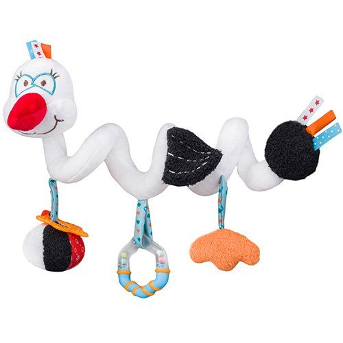 Pakabinamas žaislas spiralė "Gandras" su graužtuku ir barškučiu