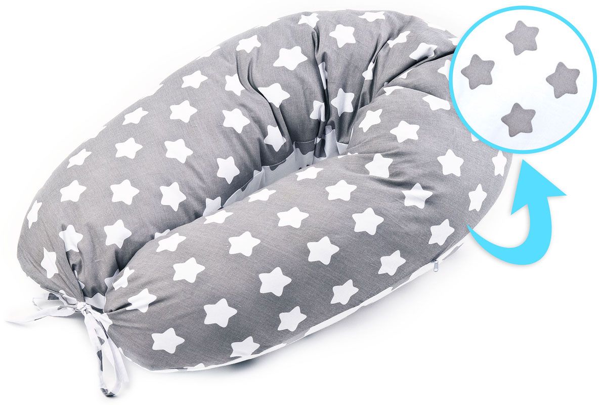 Maitinimo miegojimo pagalvė 170cm "Žvaigždutės" pilkos spalvos
