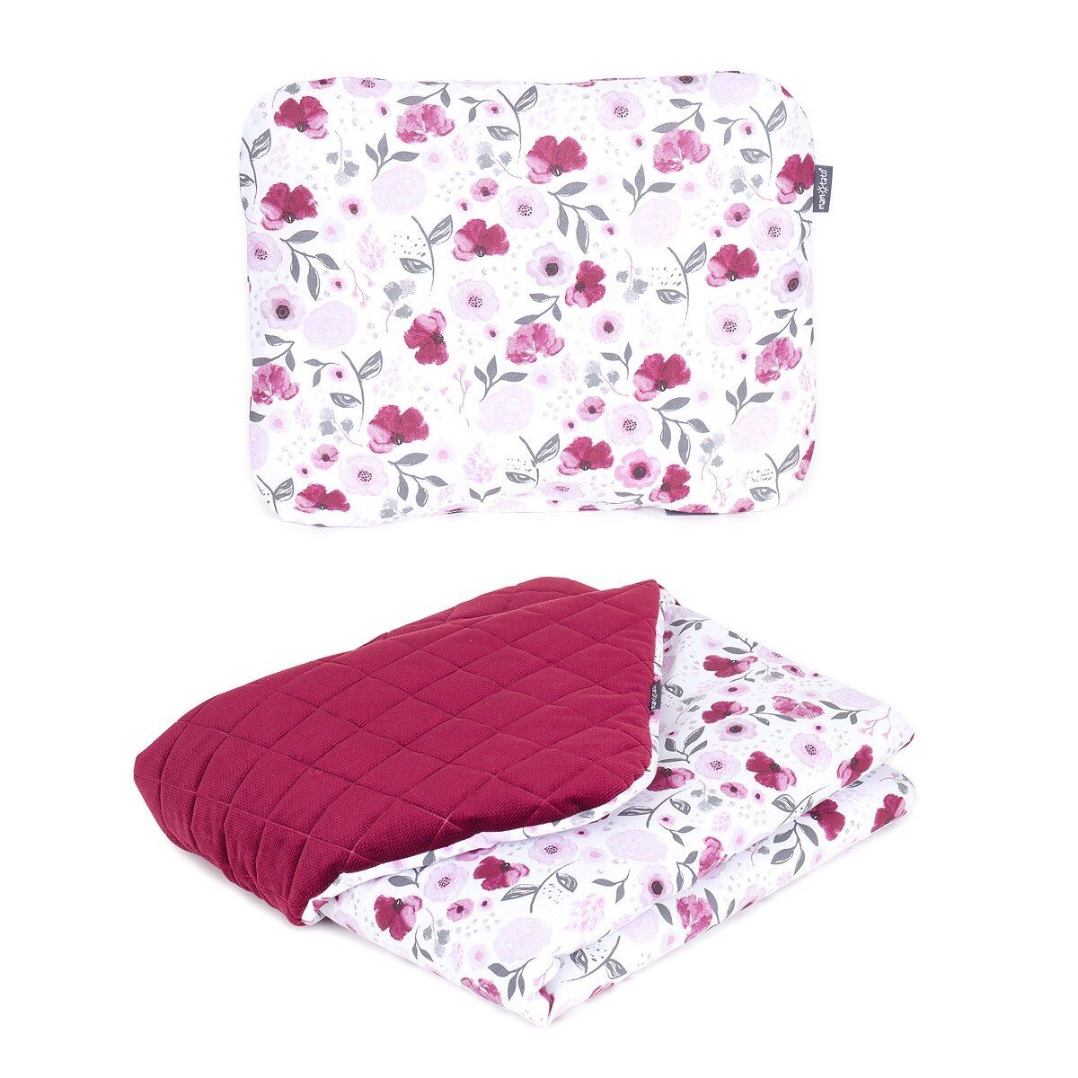 MamoTato pagalvė + antklodė, gėlytės Našlaitės, bordinė, 75x100