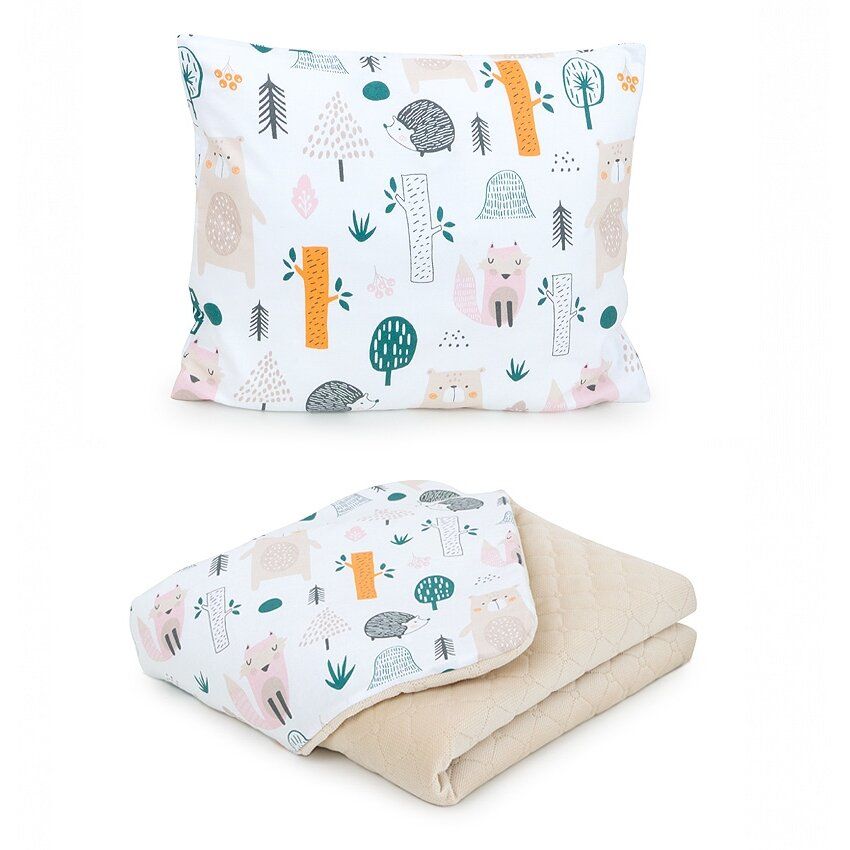 MamoTato pagalvė + antklodė, miškas, kreminė, 75x100, Premium