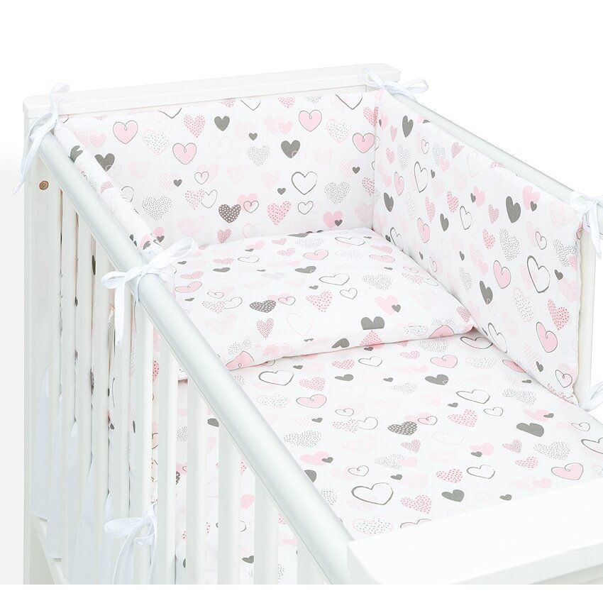 3. Lovytės apsauga 30x190cm su nuimamu užvalkalu. Gali būti naudojama iš abiejų pusių. Apsauga turi 8 ilgus, gerai prisiūtus diržus, kurių dėka ją galima tvirtai pritvirtinti prie lovelės.