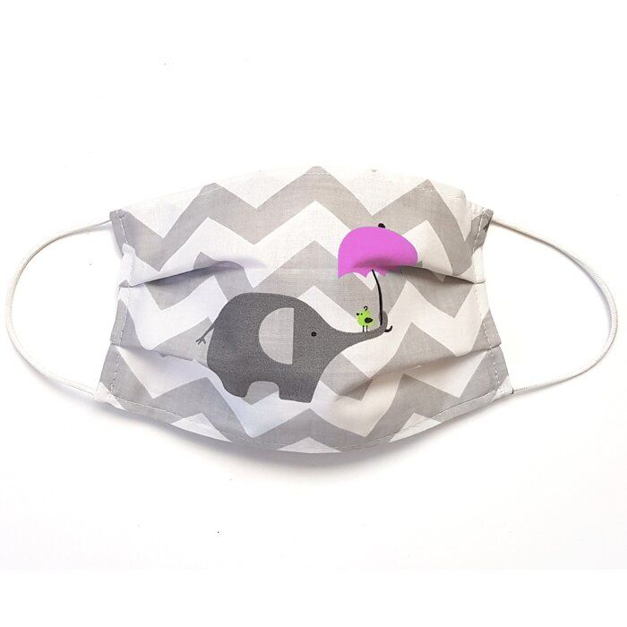 MamoTato vaikiška kaukė su kišene filtrui, gumytės, balta - drambliukas