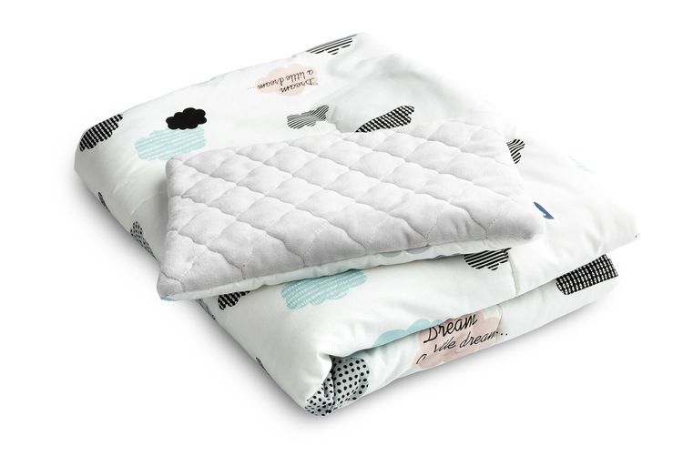 Rinkinį sudaro dvipusė plokščia pagalvė ir antklodė su antialerginiu silikoniniu pūkeliu - užpildu. Matmenys buvo parinkti taip, kad jis puikiai tiktų naudoti lovytėje ar lopšyje ir netgi taptų „mėgstama antklode“, kurią galima naudoti vežimėlyje ar lovytėje. Audiniai, iš kurių pagamintas rinkinys ir užpildas, yra sertifikuoti OEKO-TEX 100.