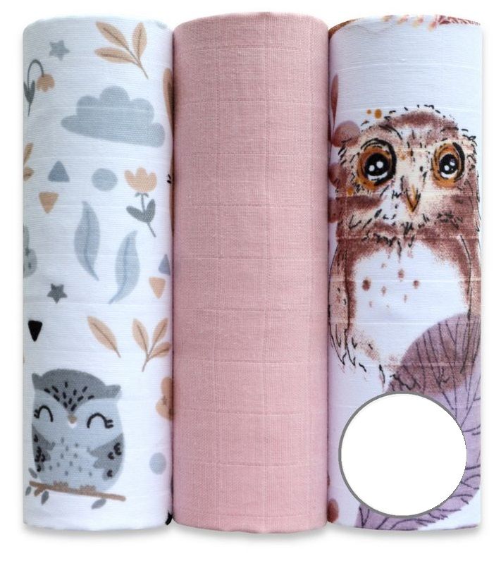 Komplekto sudėtis: 3 vystyklai iš marlės 60x80 cm