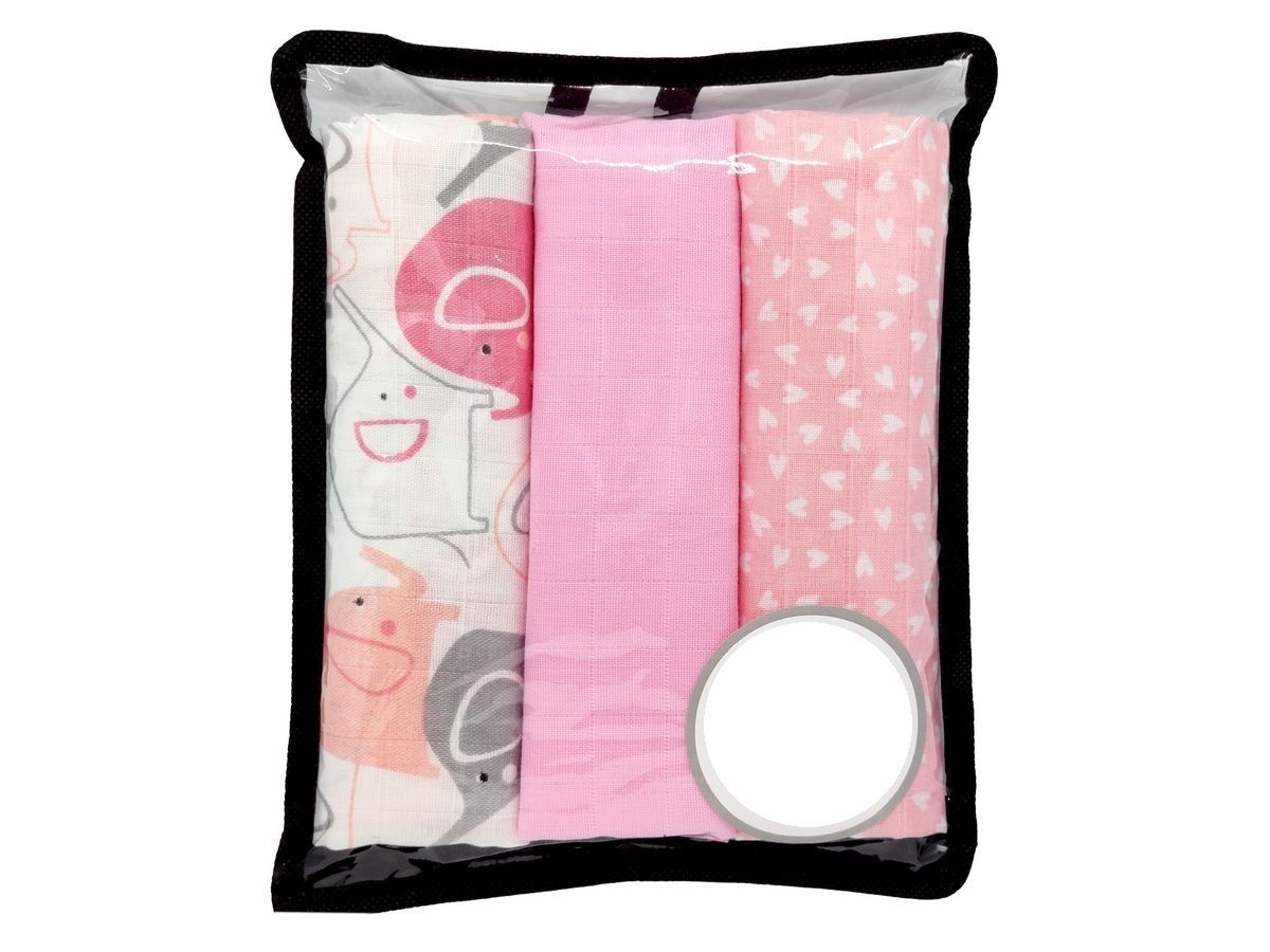 Muslino vystyklų rinkinys kūdikiams "Pink Elephants"