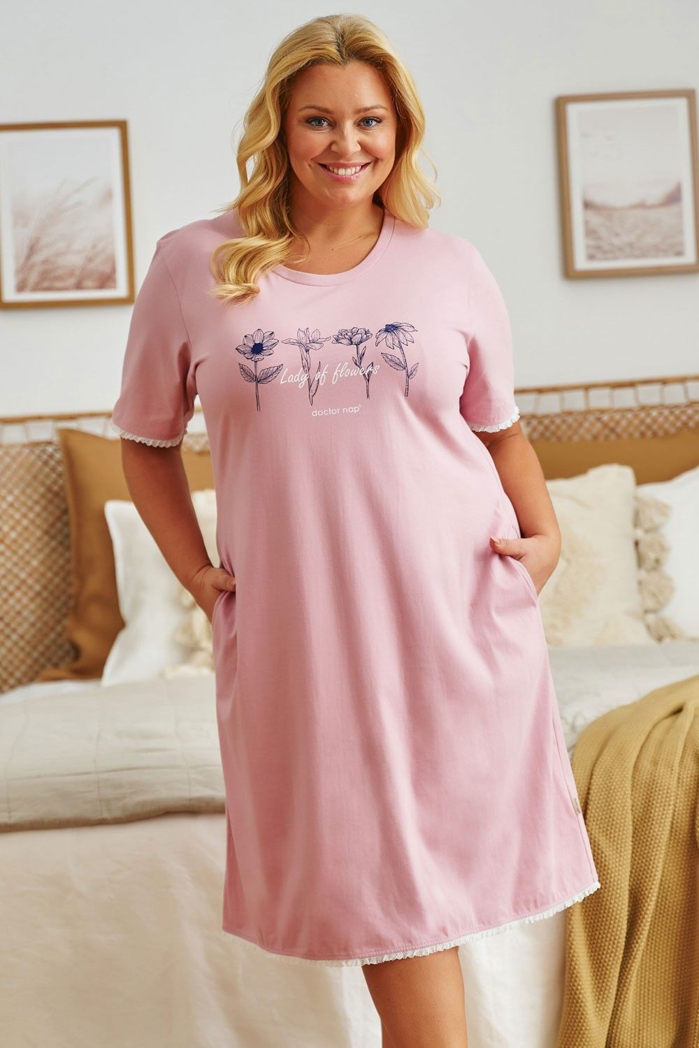 Aprašymas Naktiniai moterims "Lady of flowers" papaya L-3XL