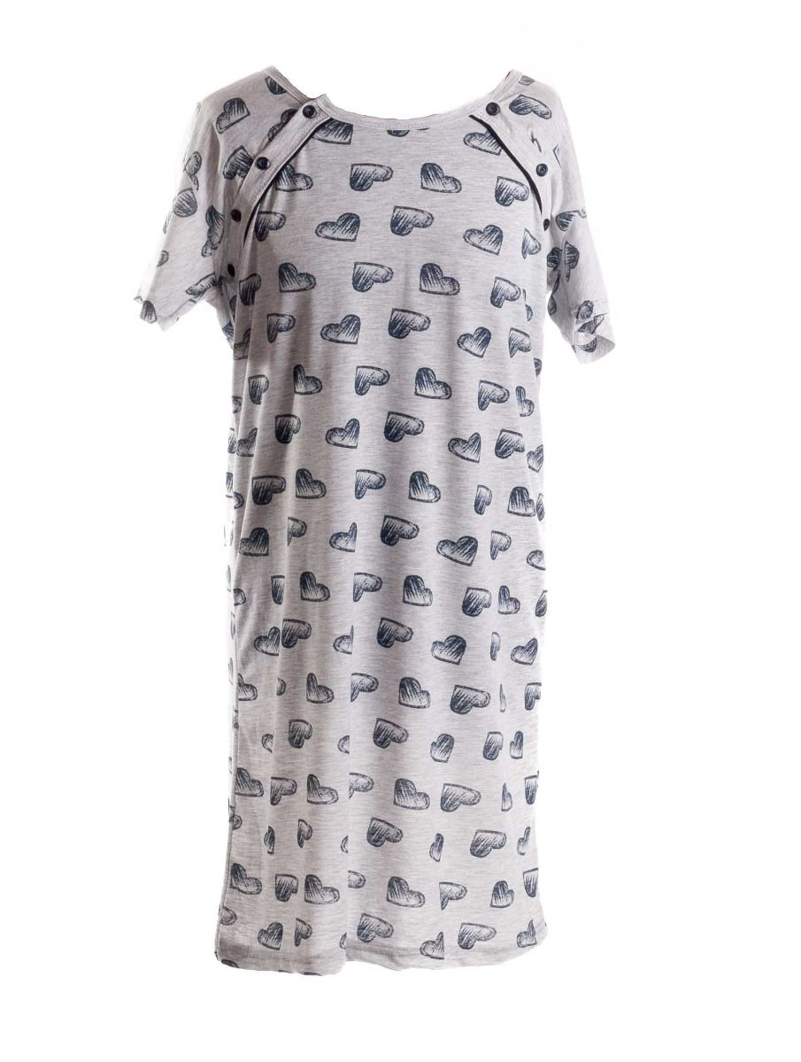Naktiniai maitinančioms "Grey hearts" užtikrins patogumą naktį, kai reikės žindyti mažylį. Atsegamas sagutėmis priekis.