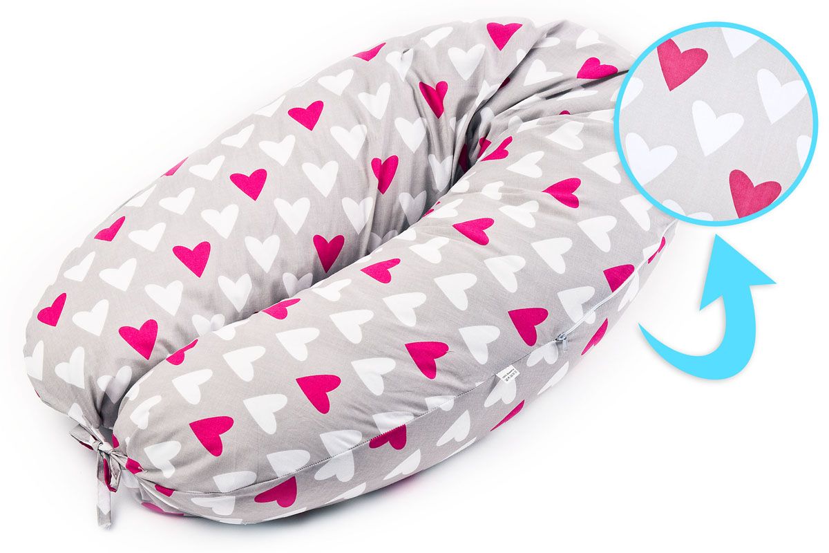 Pagalvė nėščioms 170cm "Širdelės" rožinė