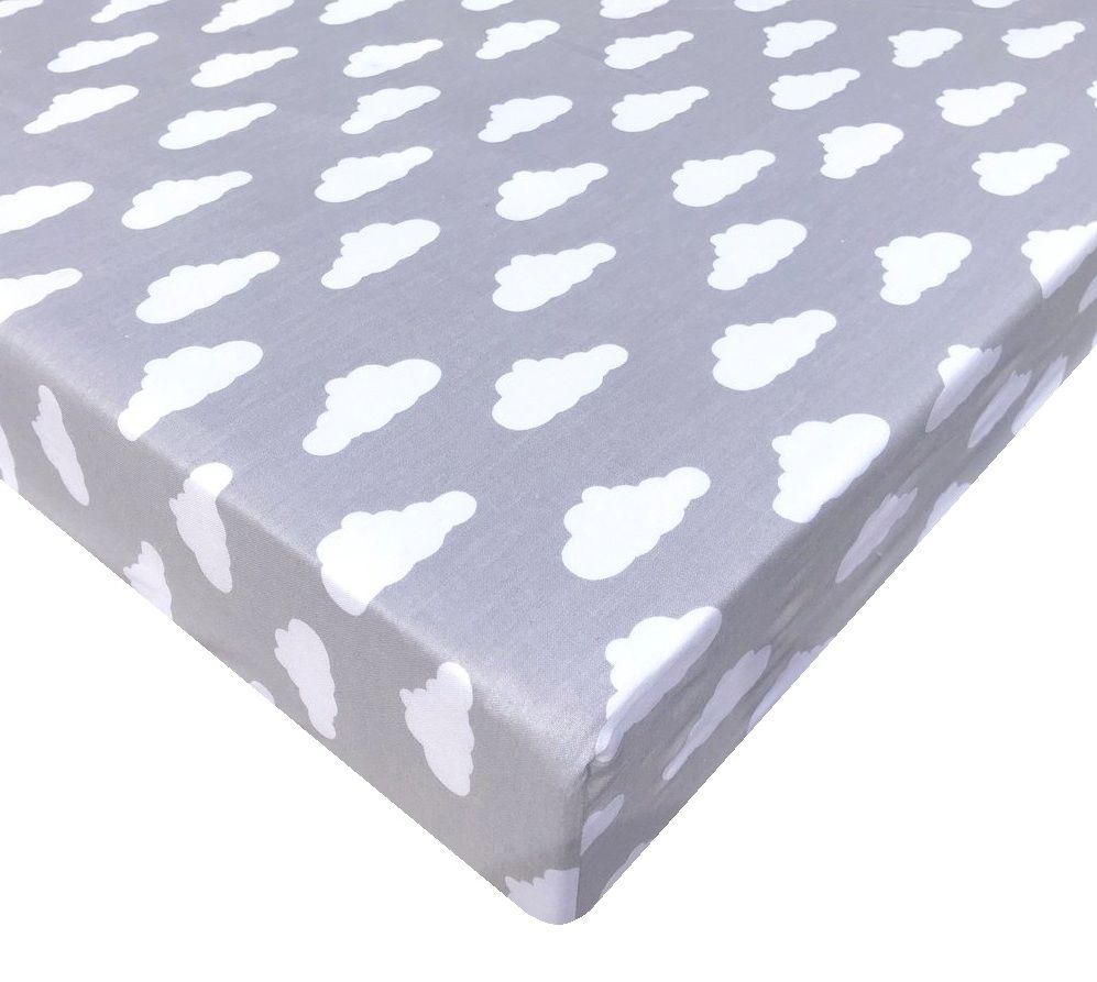 Paklodė su guma medvilninė 120x60 "Clouds" su baltais debesėliais