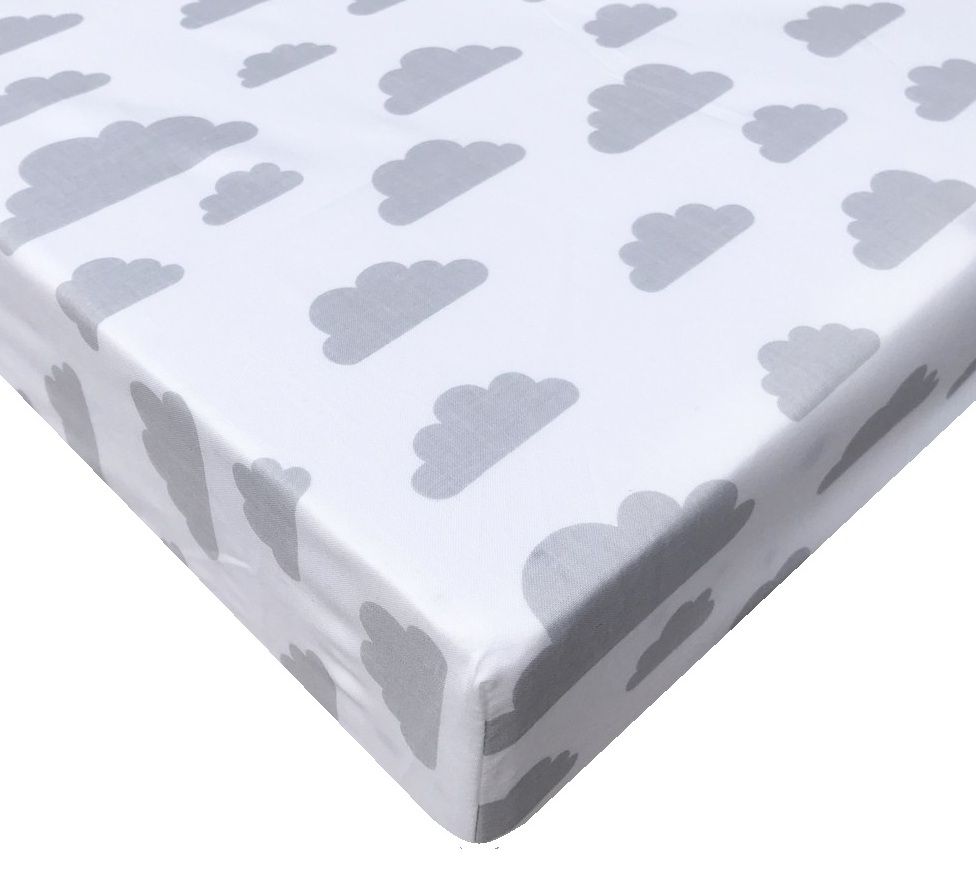 Paklodė su guma medvilninė 120x60 "Clouds" su pilkais debesėliais