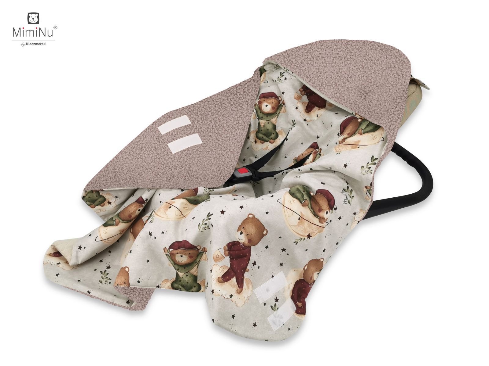 Aprašymas Pledas - vokelis automobilinei kėdutei "Blush teddy" 90x90 cm
