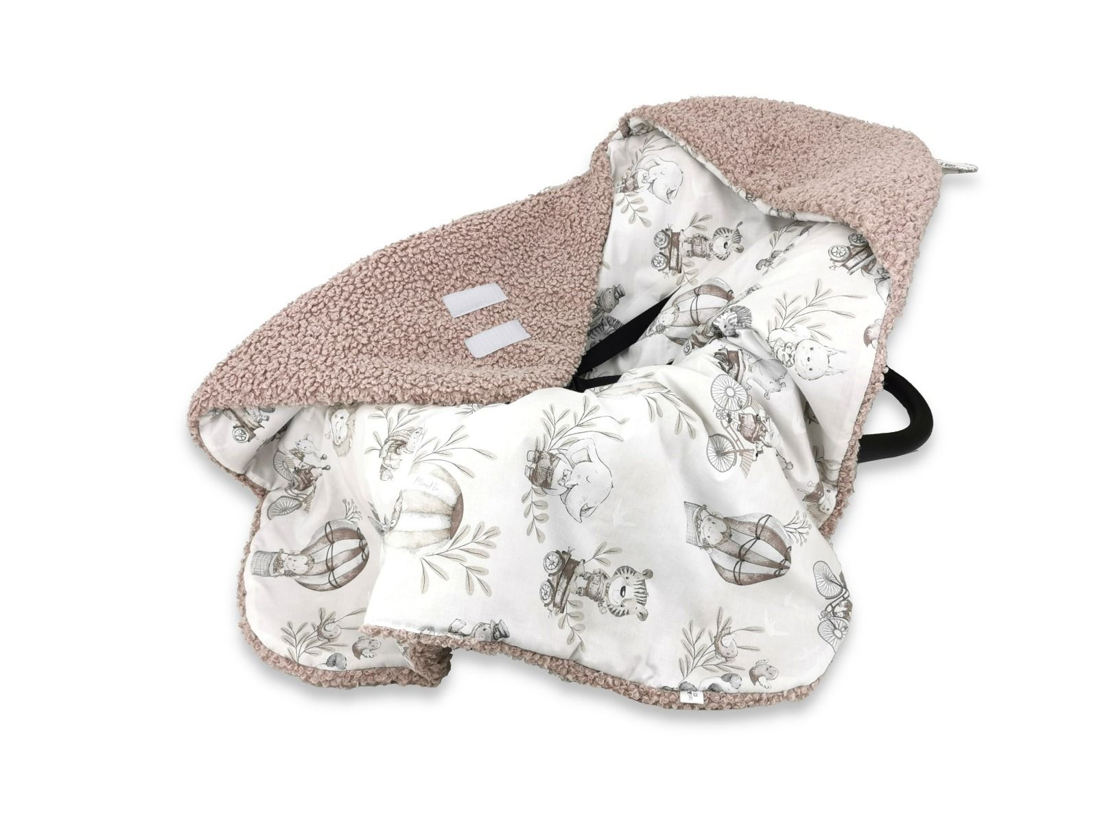 Aprašymas Pledas - vokelis automobilinei kėdutei "Blush zoo" 90x90 cm