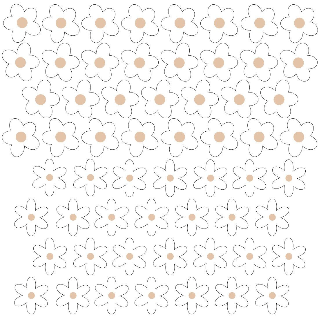 Rinkinys lipdukų sienoms - ramūnių motyvų lipdukus galima laisvai išdėlioti ant sienos ir sukurti tapetų efektą. Lipdukai yra vienos formos ir vieno dydžio. Ramunės sukurti visiems subtilių motyvų ir gamtos spalvų gerbėjams. Dėl savo unikalios formos jie puikiai tinka tiek skandinaviškam, tiek boho stiliui.