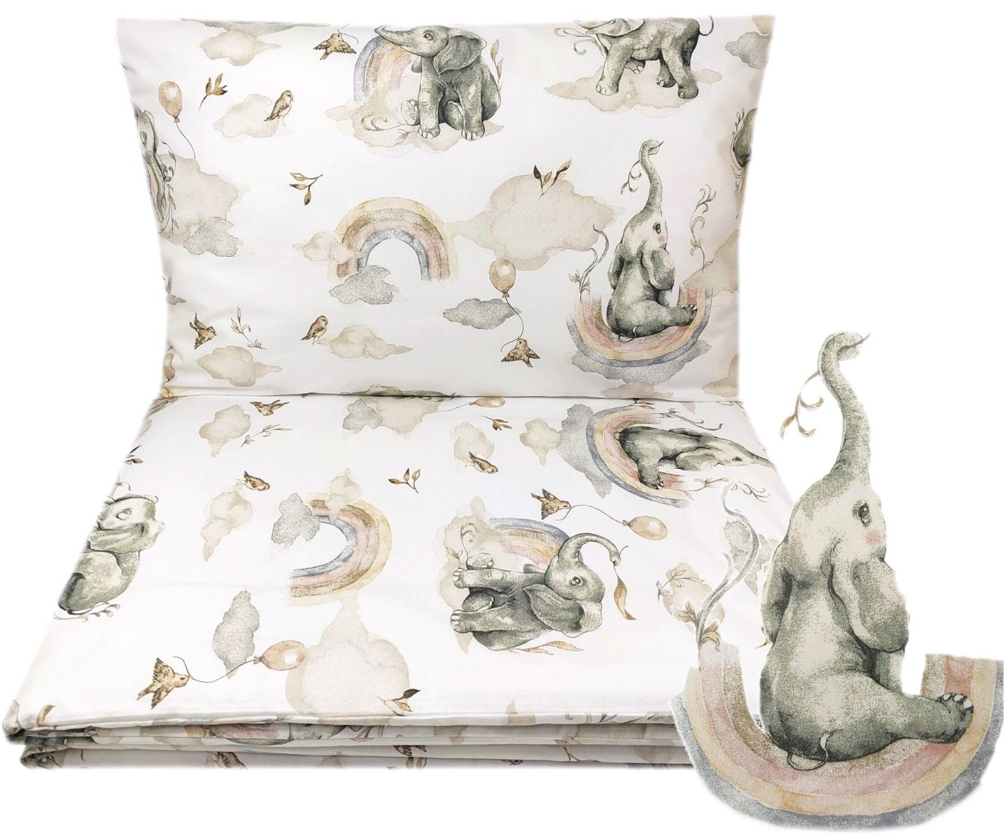 Aprašymas Kūdikio patalynė lopšiui 80x70cm "Elephants" su drambliukais-neutralių atspalvių