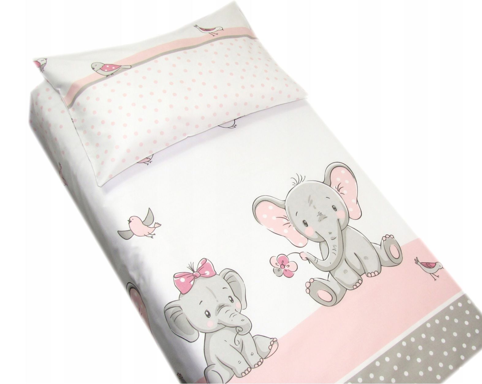 Aprašymas Patalynė kūdikiams 135x100 "Friends" su rožiniais drambliukais