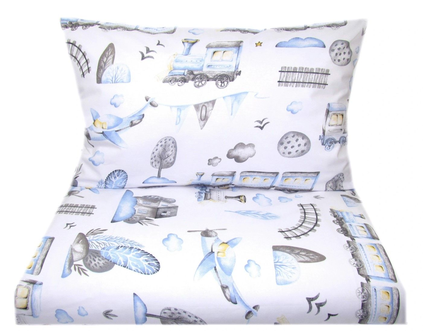 Aprašymas Patalynė kūdikiams 135x100 "Trains" su traukinukais ir lėktuvais