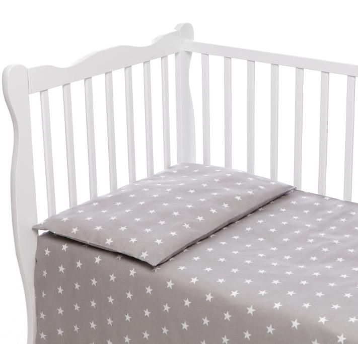 Aprašymas Patalynė kūdikiams 135x100 "Žvaigždutės" pilka su baltomis žvaigždutėmis