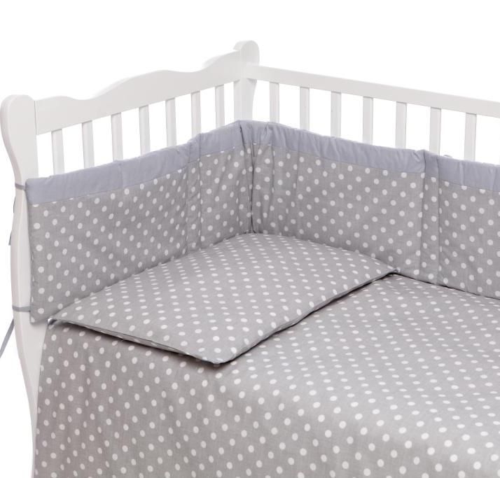 Aprašymas Patalynė kūdikiams su apsaugėlėmis "Dots" pilkos spalvos