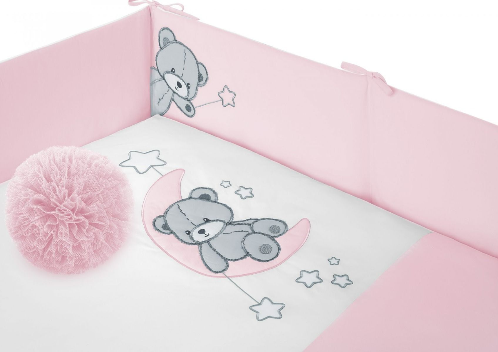 Aprašymas Patalynė kūdikiams su apsaugėlėmis "Teddy bears" rožinė