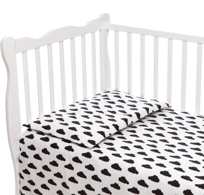 Aprašymas Patalynė kūdikiams 135x100 "Clouds" balta su juodais debesėliais