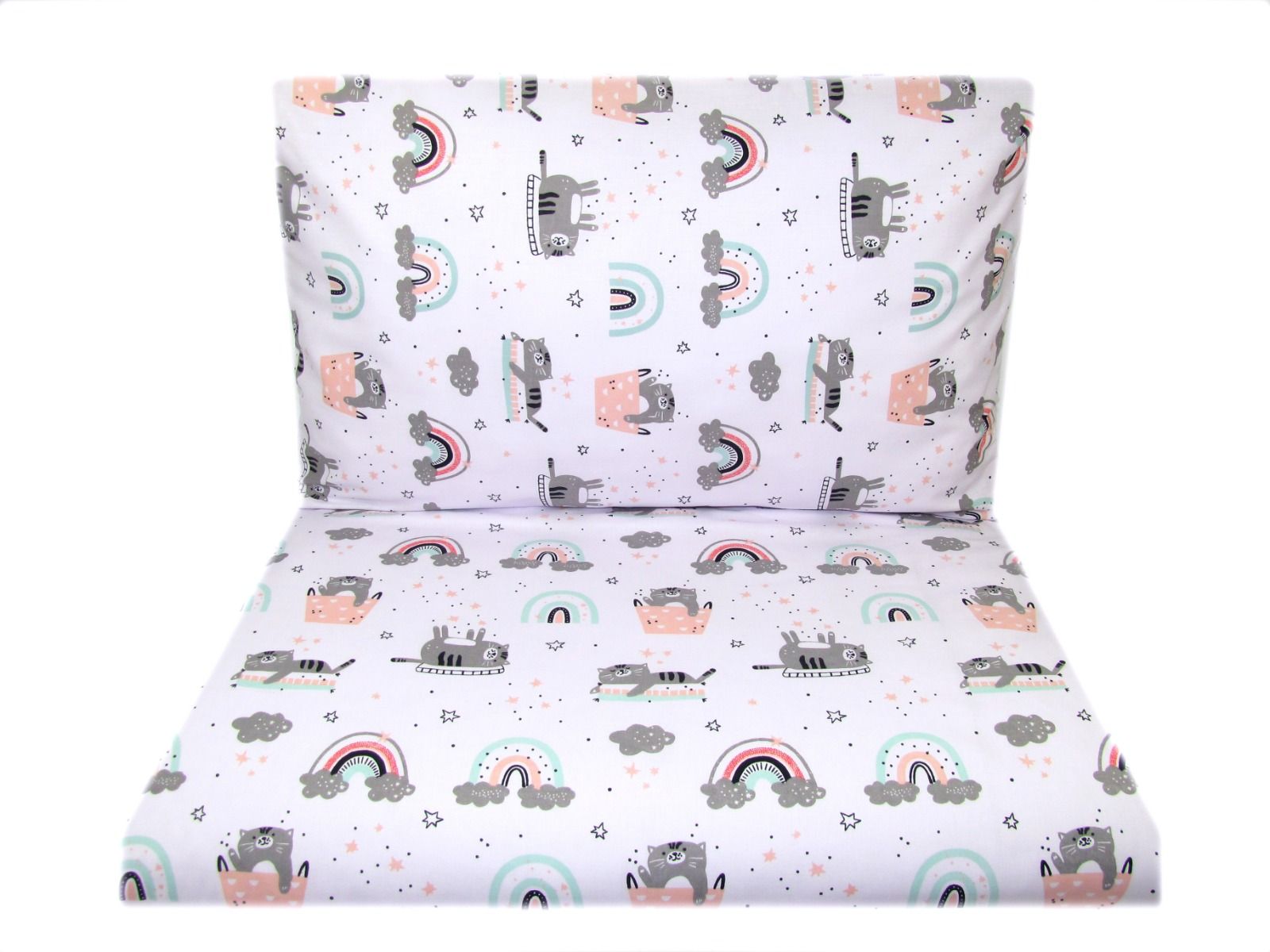 Aprašymas Patalynė kūdikiams 135x100 "Grey" su katinėliais ir rausvomis detalėmis